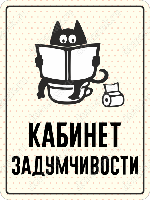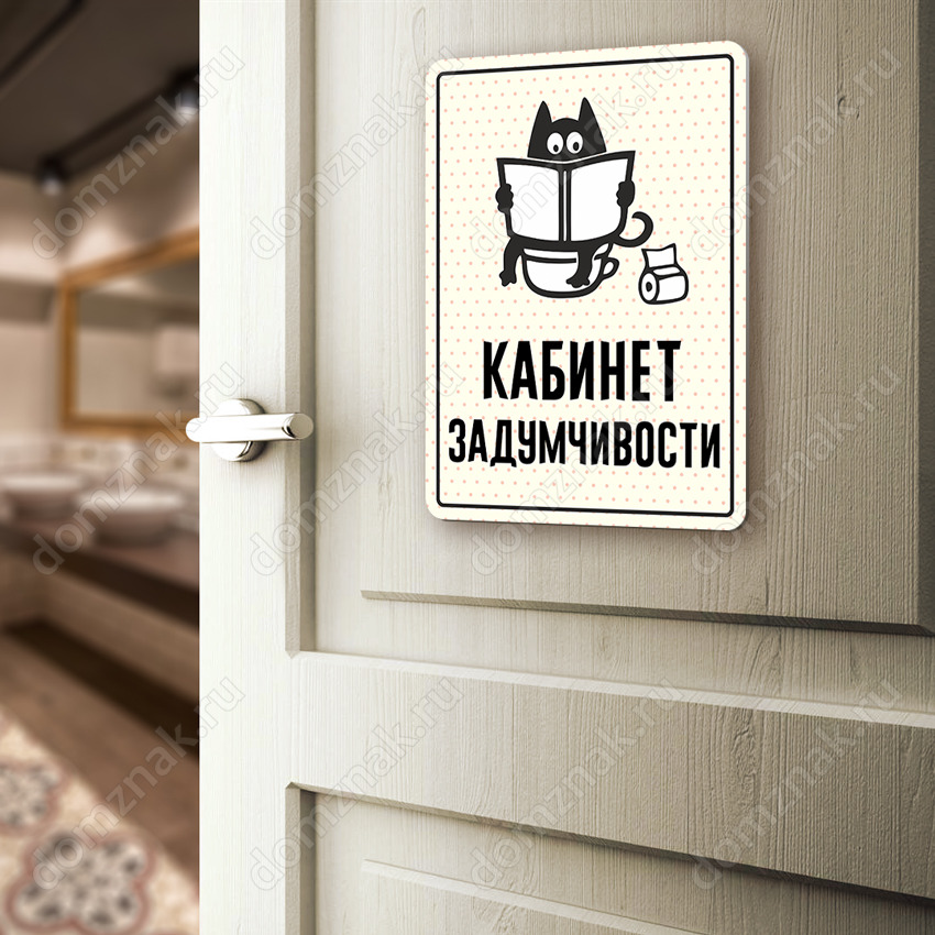 Табличка «Кабинет задумчивости» изготовлена из пластика ПВХ, толщиной 4 мм. Изображение наносится по технологии УФ-печати. Табличка предназначена для использования как в помещении, так и на улице.