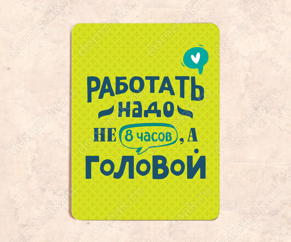 Табличка «Работать надо не 8 часов, а головой»