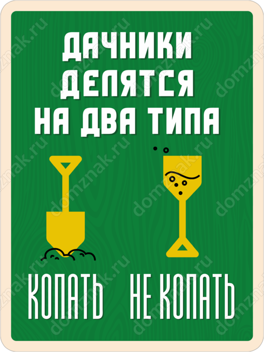 Табличка «Дачники делятся на вида типа: копать, не копать.»